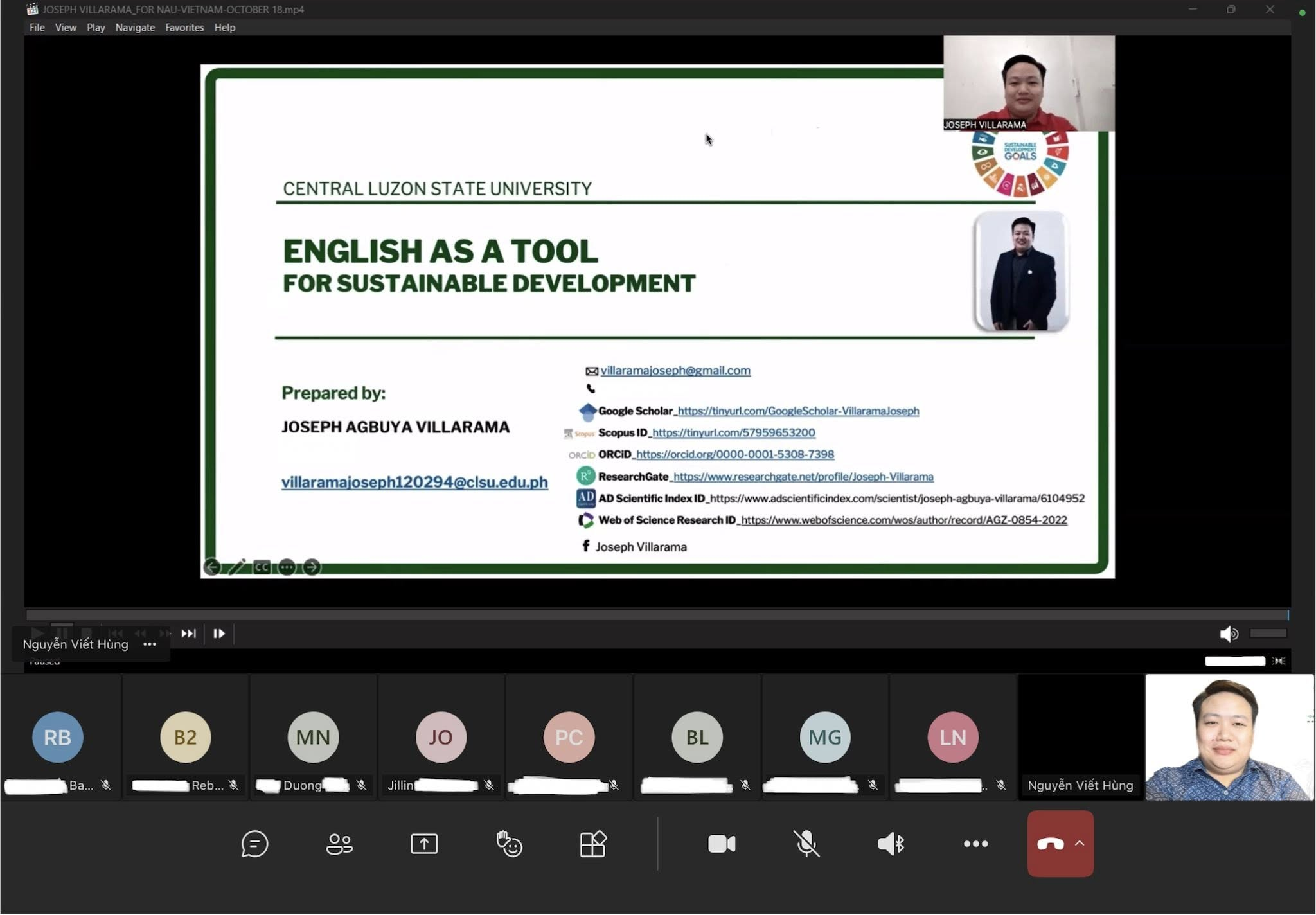 - Dr. Joseph Agbuya Villaram from Central Luzon State University, Philippines with the topic: English as a Tool for Sustainable Development