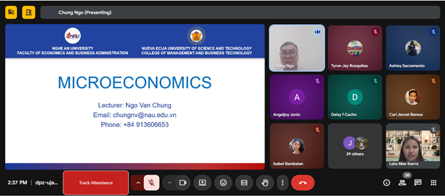 Nghe An, January 20, 2026 – As part of its international cooperation and faculty exchange initiatives, Dr. Ngo Van Chung, lecturer at the Economics – Business Administration Faculty, Nghe An University, has recently delivered the Microeconomics course to students at Nueva Ecija University of Science and Technology, Philippines.